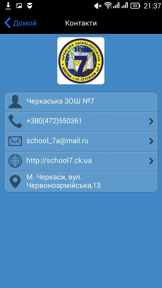 Встановіть цей додаток на свій Android-смартфон та будьте в курсі всіх шкільних новин, дізнайтеся більше про адміністрацію школи, телефонуйте у приймальню прямо із додатку, переглядайте шкільний сайт з телефону в три кліки, вкажіть на наші помилки, розкажіть Ваші пропозиції та відвідайте інші його розділи.
