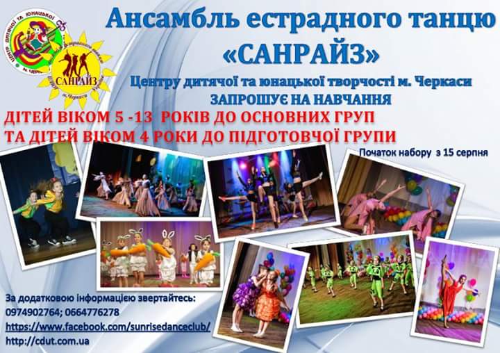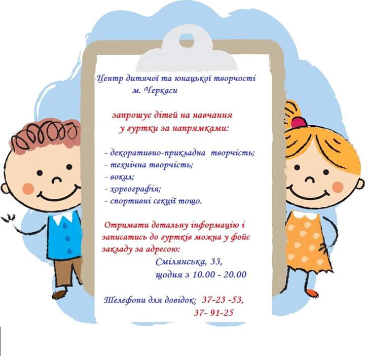 Центр дитячої та юнацької творчості м. Черкаси запрошує школярів усіх вікових категорій на занять у гуртках різних напрямків.