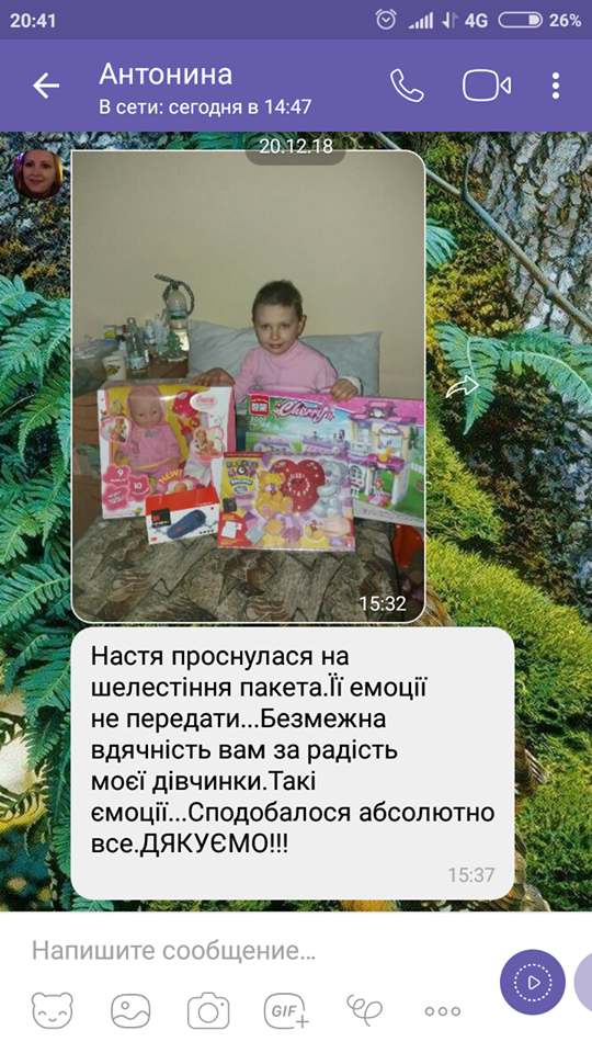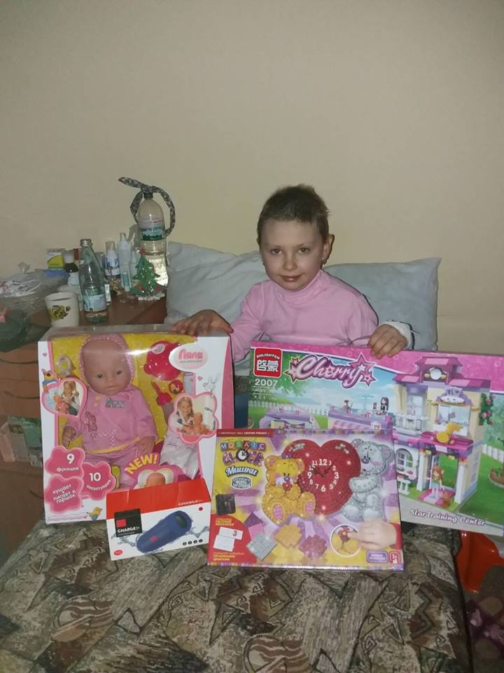 Цього дня до продажу було представлено велику кількість неймовірно гарних поробок хенд-мейд: віночки, іграшки, вишиті рушнички, іграшки з фетру, з дощику і багато-багато інших. Дуже активно учні школи грали у безпрограшну лотерею, такого шаленого азарту та запалу у дитячих очах ми не бачили вже давно. Вони раділи навіть найменшим дрібничкам. Безліч подарунків: олівці, книжки, іграшки, солодощі, блокноти, помади, лаки для нігтів, стаканчики, резинки для волосся, зошити, чашки та багато-багато інших сюрпризів було виграно цього дня. Найважливіше, що усі кошти (понад 5000 грн.), які було виручено пішло на придбання подарунків двом чарівним дівчаткам, які лікуються у дитячому відділенні Черкаського обласного онкологічного диспансеру та паралельно навчаються у нашій школі. Вже 20 грудня подарунки було придбано та вручено батькам дівчаток. На жаль, нам особисто не вдалося зустрітися з Катрусею та Настею, але, поспілкувавшись з батьками, а також Катрусею в телефонному режимі, говоримо відверто – ми створили справжнє свято для дітей. Батьки щиро дякували за подарунки та фінансову допомогу для діток. А Катруся вдячна всім за здійснення своєї мрії! Декому, можливо, подарунки можуть здатися звичайними, а для дівчинки це втілення найпотаємнішого бажання у життя.