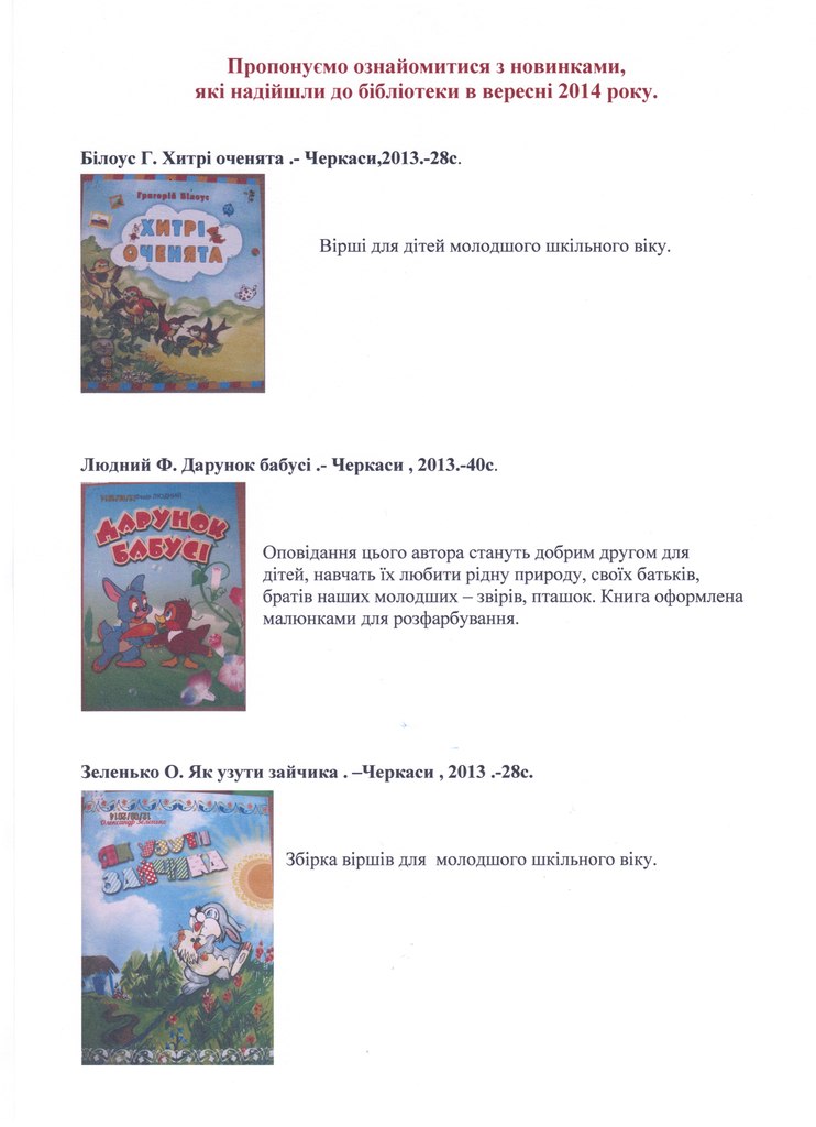 Нові надходження у вересні 2014 року (для детального перегляду натисніть на потрібному зображенні):