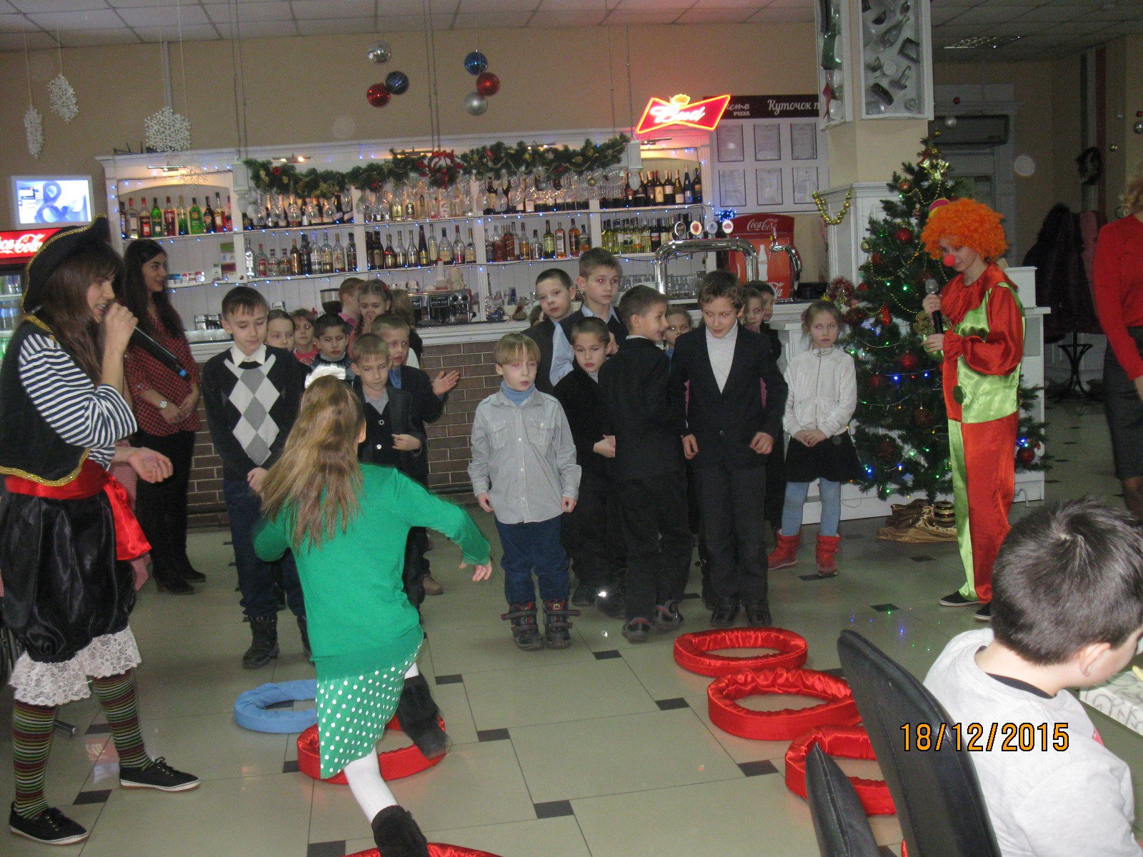 У піцерії в гості до дітлахів прийшли справжні Клоун та Пірат, з якими учні співали, танцювали і змагалися у веселих конкурсах. І за це вони ще отримували призи! Це і м’які іграшки, і книжечки, і набори яскравих олівців та фломастерів, пазли і розмальовки, пакуночки зі смачними цукерками.